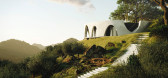 Henge Hill 的房子是根据风景如画的橄榄山坡上一座旧农场仓库的脚印设计的。 剩余贝壳的粗糙工艺得到修复,并固定在天才地点深处的新房间套房。