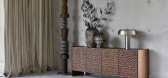 Thoughtful construction, clean lines and carved detailing define the collection’s tables and storage pieces. The round Helio dining table comes in smoked ash and shell, where the timber or veneer top, respectively, is anchored by two different circular legs: one i...