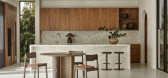 ,Natural materials can be carved, turned and worked to comprise patterns of sorts, like the fluted detailing seen in the marble-clad wall and walnut kitchen island at The Bella Freud Apartment at Television Centre. Both materials have been ridged, imb...