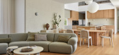 ...nography of the apartment was composed using an ascetic geometry carefully carved from a palette of natural materials such as wood, stone, ceramics, lime and marble plaster, locally softened with fabrics and upholstery. Visual accents of colour are introduced by the use of scattered natural vegetati...