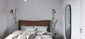 ,灰白色的墙壁,乳白色的灯,窗帘上飘着一股滚烫的白色亚麻布,漂白的镶木地板。这就是 Lena Solovyova 和 Ilya Klimov 的新公寓看起来“...