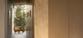 The entrance with strong black tone for volume makes the space special in the building which is