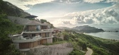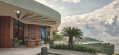 房子坐落在陡峭的斜坡上,可以看到远处的海湾。房子利用...