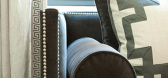Though I am still not over the gloriousness of the loft in my previous post, here is another project by Jenny Wolf that proves this designer can whip up just about anything and make it fresh and hip. Even when you're using granny's chair (above). This apartment is fairly traditional and classic, yet...