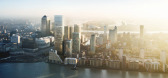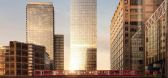 transition between the 665 meter height of the landmark office tower to the northwest and the lower scale residential blocks beyond.
