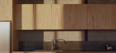 大面积的暖色木质与极具质感的灰调家具相辅相成,
