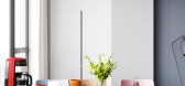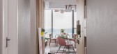 The lotus leaf of the lotus flower, also a significant flower of India, in that particular simple shape and material enhance the theme of modern Indian design. On the left is the dining room in neutral colours with furniture f...