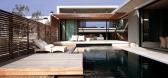 A narrow 14m site was engaged to its maximum to achieve a spacious home arranged around a large garden and pool courtyard. Extensive concrete spans capture the panoramic sea views