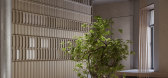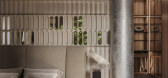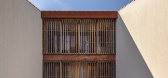 ...tuário, difundindo luz e oferecendo conforto aos espaços adjacentes. Colunas e vigas de madeira recuperadas de estruturas próximas ganharam uma nova vida, incorporando sustentabilidade com o compromisso de não utilizar madeira nova na construção. O piso de calcário e as paredes com acabamento...