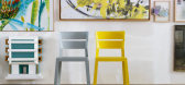 该椅子的框架和腿由坚固的木质三角形型材加工而成,并使用最新的CNC铣削技术生产。