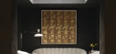 ...expansive floor. In contrast, brightly polished copper is used on cupboard doors and inlet shelving, as well as door, handles that are then wrapped in leather to create a more luxurious, tactile experience. A suspended steel staircase projects out of a wall, appearing to float effortlessly away from...