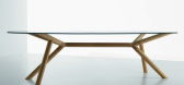 一个不规则形状的玻璃顶部是支持由一个网络的山毛榉支柱,以形成这张桌子由意大利设计师保罗卡佩罗。