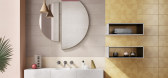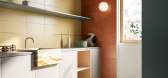 ...FIANDRE - Project: FJORD, 2020ART DIRECTION, SET DESIGN AND STYLING: TERZO PIANOEssential sets, an editorial view in which the walls are interpreted as large backgrounds with bright colors, to be combined with the concrete textures of the ceramic materials. A project characterized by defined geometr...