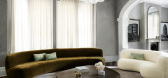 ,材料:卡拉拉大理石,桦木层,混凝土,拉丝乌木橡木,锤打青铜,橄榄皮革,小羊羊毛