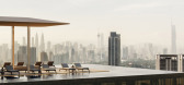 ...unding floor-to-ceiling windows provides the canvas and foundation for the luxurious and polished design and creates a sense of quiet elegance. Drawing on this, leather, brass trims, and light-grained wood floors complement the dark ceiling and light fixtures while paying homage to boutique hotel in...