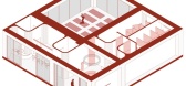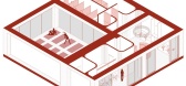 该建築位于一个面向一条狭窄街道的地块上,街道上有不同时期的小房子,是典型意义上的房子。平面图是一个12×12米的正方形。建築的体量由法规强制规定。