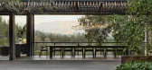 ...rlooking refined outdoor rooms and a cantilevered pool suspended above the valley – a layered experience of enclosure and openness.