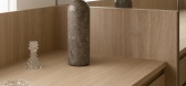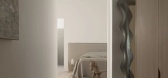 ...een the living area and bedroom offers both flexibility and privacy. Wide, silver-tinted timber flooring panels were chosen for their unique texture and colouring, while rich marble flooring lines the foyer and bathroom.