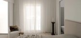 ...re formal than the other, but both airy, uncluttered, and bathed in grays, silvers, whites, creams, and other neutral tones. The dining table is tucked discreetly off to the side against a banquette. Wood stools and accent pieces add notes of warmth to the eminently restrained compositions.
