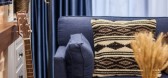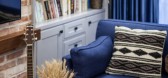 海军蓝的沙发与原木色的实木茶几