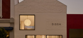 ... through the threshold and a step or two inside.The building itself was an architectural gift, with a striking ‘house shape’ that Perera likens to a doll’s house, and a high picture window that frames a moon-like fibreglass pendant by Amy Vidler, giving the facade a distinctive street presence...