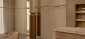 a collection of sculptural and abstract volumes designed by madrid-based architecture firm OHLAB, form a reflective, golden environment of this new relojeria alemana jewelry store. located in port adriano, in the recently opened marina by philippe starck in the southwest of mallorca. the installed p...