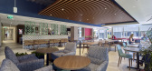 ...QUIPO CREATIVO used sound insulation elements as one of the leading design strategies. The result is a lively acoustic ceiling simulating beach towels with an explosion of bright colours and sailor stripes. The textured carpet flooring performs as the organic counterpoint to the ceiling. In differen...