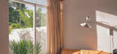 Underneath the terrace is a porch surrounded by flexible bamboo panels designed to offer privacy and to stop the sunlight f...