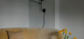 ...lves again, ending in a lecture spot, adjoining the bedroom window. On the upper floor, a roof window enlights a storage space that can be turned, one day, into a guest room or a reading salon.