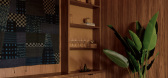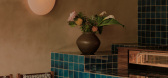 ...e setting sun turns the water a vibrant orange.” Wanting to emulate this effect, Wilkins installed a long bar directly beside the window and clad it in emerald glass blocks. These iridescent squares catch the sun over the course of the day, refracting and dappling the light.The rest of the materia...