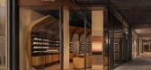 ...Located in the Westfield Hamburg shopping centre, just steps from the Elbe waterfront, it is inspired by maritime and port themes. The concept was based on the image of a wooden boat. The element defining the space were the curved ribs arranged in a row, resembling the nose of the ship.