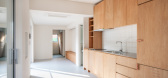 ...nto the long and narrow shaped site with adequate ratio and scale; and the other one is about the choice of what kind of memory should remain from the place used to be an inn.,The café on the first floor is located in the remaining space after securing the parking lot including the car entry path...
