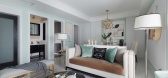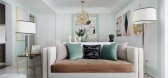 宽敞的空间中放置一张布达佩斯沙发,转角的配置让沙发像一张舒适的床,可以提升空间的舒适度和松弛感,阳光从落地窗投入洒满客厅,空间充满治愈力。