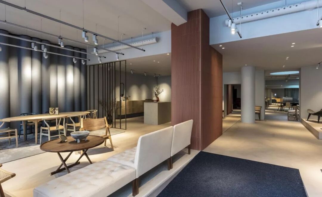 垂直的纹理在巧妙的灯光设计下,呈现出完整又不失变化的光影效果,不经意间烘托出静谧、舒适的空间氛围。或横向或纵向的褶皱让空间得以延展,视觉效果更具连贯性。