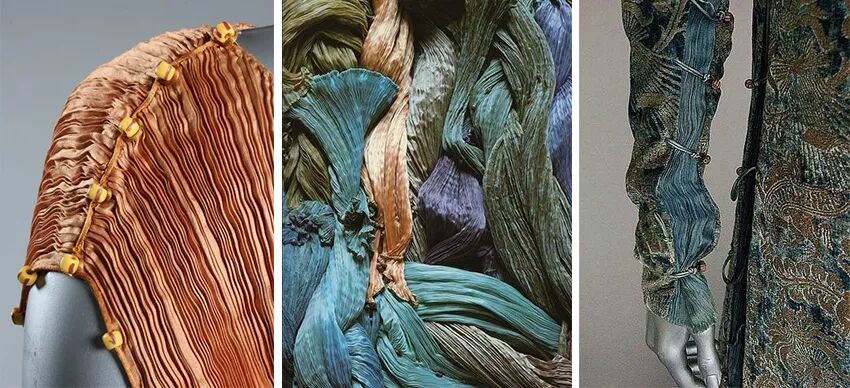 虽然由Mariano Fortuny最先创造,但是把褶皱艺术发挥到极致的,那就必须提到三宅一生。不同于Mariano Fortuny的优雅,三宅一生的褶皱艺术是极具创造性的。
