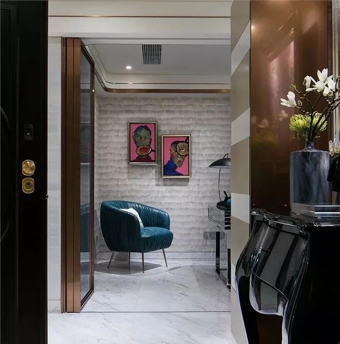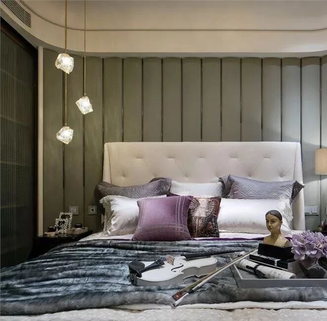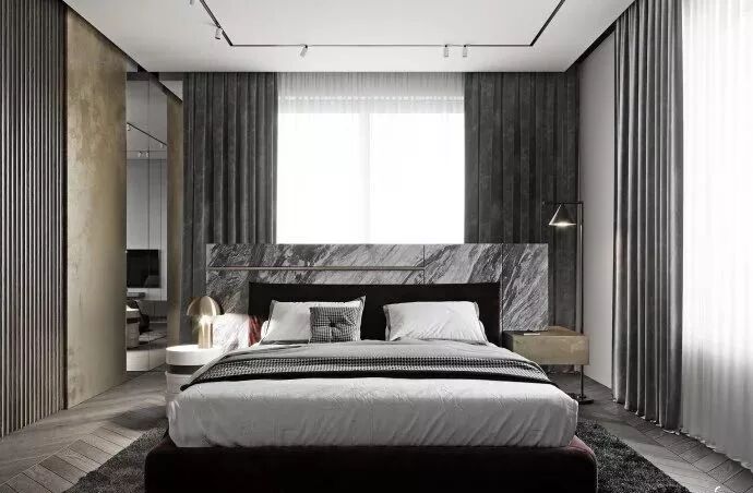 作为生活的私密空间之一,安全感与稳定感是进行室内设计时追求的重中之重。褶皱肌理与平滑肌里相间的装饰设计让空间富有韵律感。