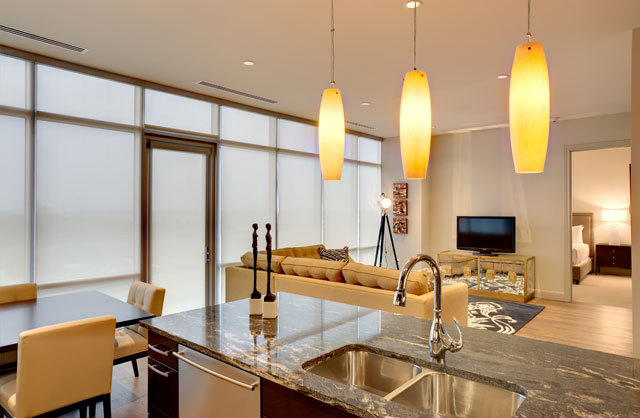 德州休斯顿Hotel Sorella Citycentre_suite-1108-kitchen-and-living-night.jpg