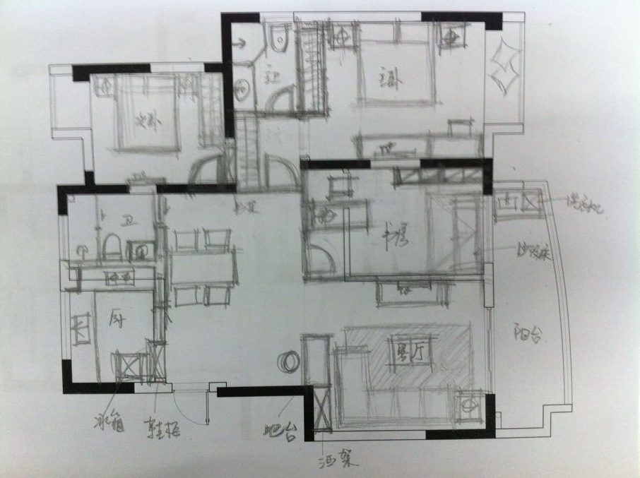主要考虑书房的隐蔽性、吧台有点牵强了。。。