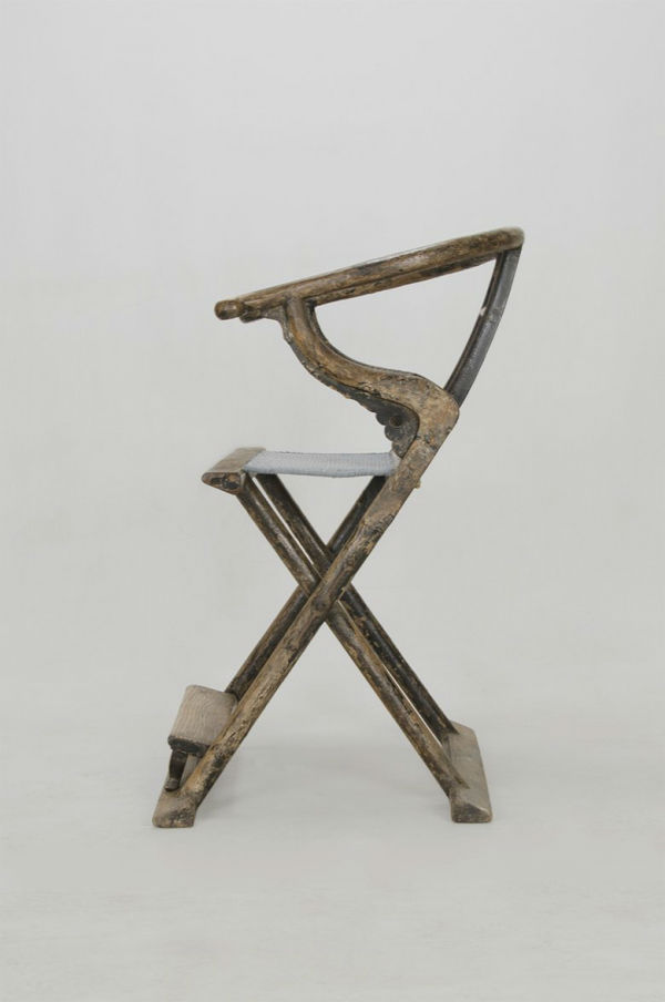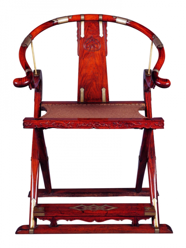 产于华北,在椅类之中,交椅有可能是最独特又最如谜的。其造型像汉人的半圆凭几或者方椅靠背与湖人的马扎底座联姻组成的。交椅最早出现的应该始于辽宋时代,跟其他的传统椅类晚到两三百年。究其来源已无从考证,不管究竟从何演变而来,在慢慢地发展过程里,最终已不再是平常百姓所能够使用的家具;其使用者的地位逐步提升,最终达到了顶峰,为达官贵人所专用,皇帝和贵族们在宫外出游之时经常用到,是他们当作身份和地位的象征。
