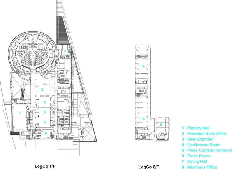 新政府总部及立法会大楼采用玻璃幕墙,占地4.2公顷,其中特区政府总部大楼分为2部分,分别是楼高27层的办公大楼及低座大楼,除香港律政司外,其余的司局长将迁往办公大楼,低座则是行政长官的办公室、宴会厅及行政会议会议室。立法会综合大楼也设有高座大楼及低座大楼,立法会议事厅可容纳最多120名议员,部分议事室会设公众廊,供公众旁听会议。