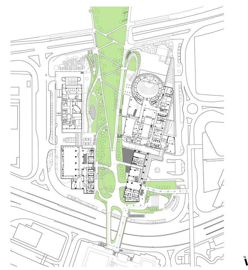 设计策略是将市内分散的绿化空间连接起来,由香港公园及夏悫花园,以至将来的海滨长廊。立法会综合大楼和行政长官办公室分别竖立在两旁,与政府总部大楼的东座及西座并排,分立在市政公园两侧,眺望广阔的维港。