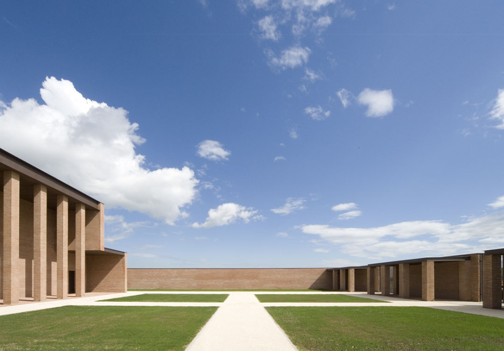 布置在农田与城市之间,建筑外围砌起一圈围墙构筑出一个理想的生死悼念之地。