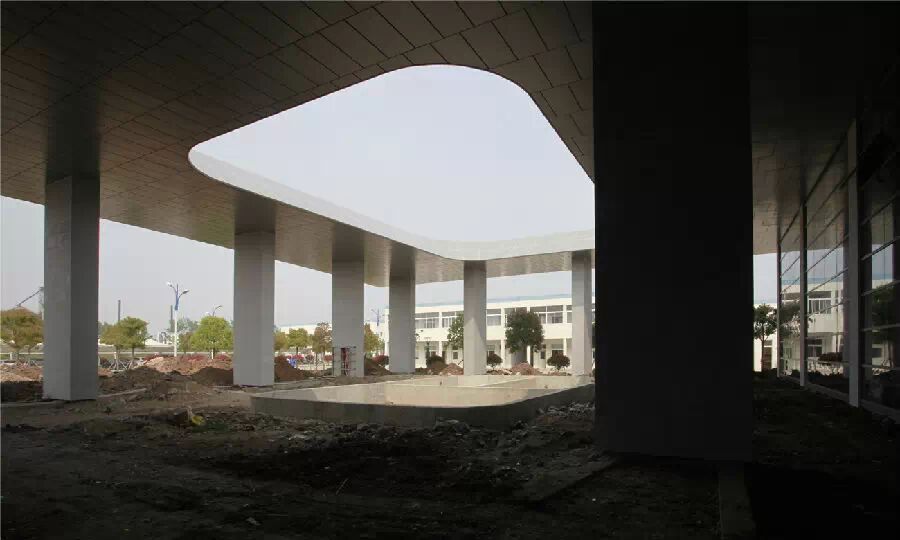 形式是建筑设计永远绕不开的基本问题,它是建筑的物质性体现。建筑师的工作就是将某种精神品质凝固到建筑形式中。形,关乎体量、空间、比例、尺度、结构、材质、构造;式,在我而言则更多是承载了社会文化建造技术等丰富的内容的符号。在这个案例中,建筑的“形”需要体现“现代、大器”的意;而大屋檐的传统之“式”,则由于檐口的轻薄处理和弧线的巧妙运用,完全被颠覆了,达到了另一种全新的具有当代感的新“式”样。