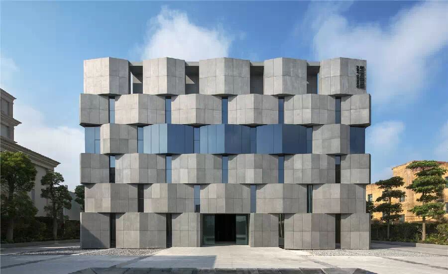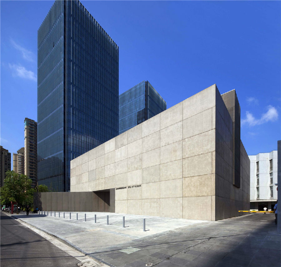 上海油雕院美术馆是我第一个完成度较高的建筑作品。在赢得竞赛之后,我至少做过50个不同的立面方案供一轮又一轮的筛选,这可能可以从一个侧面反映出青年建筑师在中国做建筑设计所要面临的境况,而我实在是幸运很多了。领导最终选择了混凝土立面方案,因为外观方正大器,造价可控。这样的过程就像是长跑,你必须有足够的耐力和信心,积极地面对一切挑战,才能走到最后。
