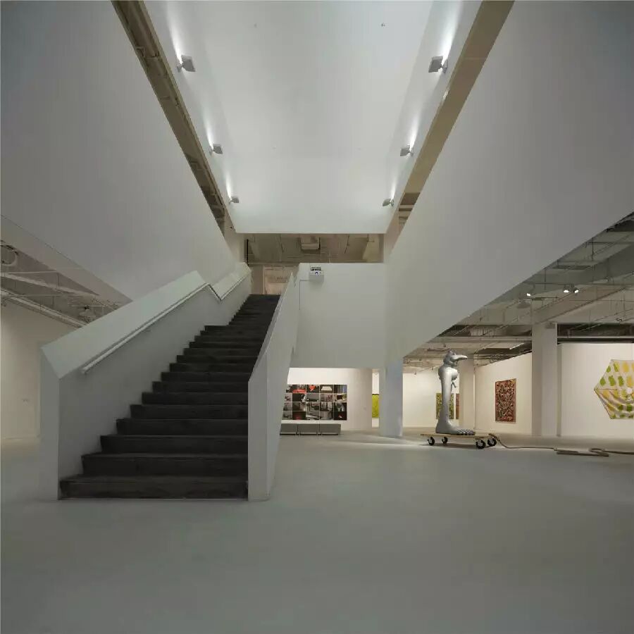在油雕院美术馆漫长的项目过程中,我发现对建筑基本问题的具体回答,往往可以切实地帮助推进整个设计。例如对“体量”感的苛求,促使我寻求如何用斜墙达到突出入口,围合内院的目的。而作为对“场所”的回应,促使我决定去除所有围墙,形成开放的入口广场空间,且没有台阶,只有缓坡。混凝土挂板“材质”和“构造”是个难点,当时国内还没有采用混凝土干挂幕墙的先例,我只能硬着头皮按照网上搜索到的信息,挨个给厂家打电话。非常幸运地是第21个电话就找到了老罗,他的厂愿意做特殊混凝土构件。我们和幕墙公司一起,共同探讨解决方案, 决定板材的尺寸,缝宽,以及转角“L”形板材的做法等细节。上海酸性大气腐蚀情况不容忽视。这让我联想到安藤忠雄95年在京都的一处混凝土建筑作品,因为酸性大气对材料表面的腐蚀,而今已显得千疮百孔,脏水挂壁。为此我还特地找到混凝土表面抗腐剂生产商,让老罗确保每块挂板在出厂前都至少经过两遍抗腐剂滚涂。我希望通过平整光滑的立面使稳定的体量获得一种纯粹的抽象感。而在内部楼梯扶手的处理上试图以斜切面的做法让整个垂挂下来的罩板变得轻簿,以获得一种抽象的面的视觉感受。簿纱般金属编织网材料的应用与厚重的混凝土挂板产生强烈的轻重对比,取得另一种视觉张力。不同材料间精确的对缝构造要求,使整张“表皮”显得严整统一,这种感受甚至延伸到了广场地面铺装。每一个细节的推敲都需要对建筑基本问题进行具体的回答,自然而然地发展出整栋建筑。这似乎是一种从量变到质变的结果,最终将一种精神力量成功地凝固在物质中。