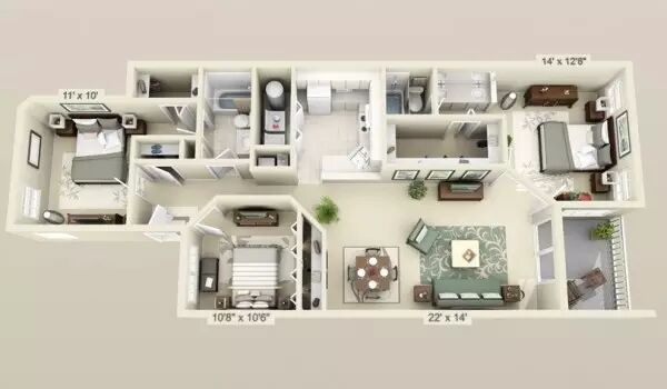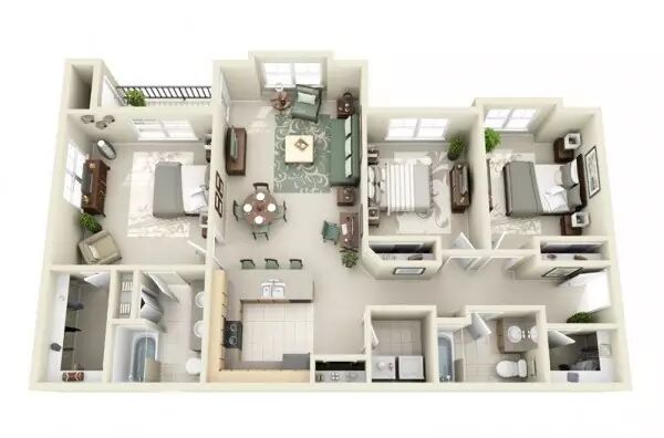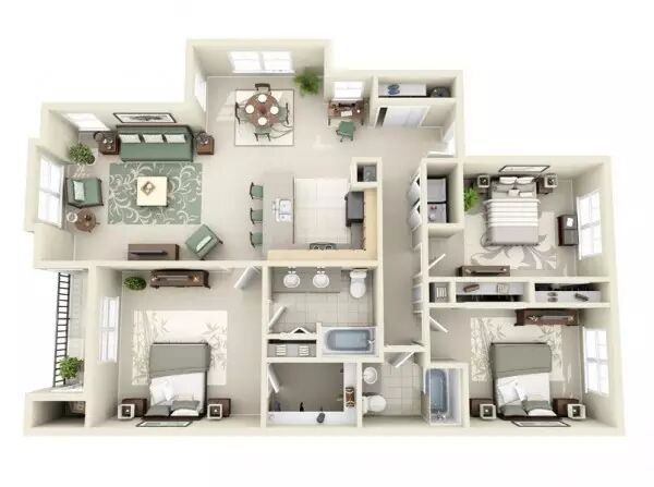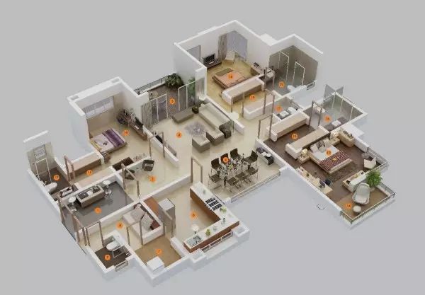有三个卧房,对于有孩子或室友的家庭而言,他们可以拥有自己独立的房间;对于家里人较少的房间,例如情侣,则可以把多出来的卧房改成书房或者客房。以下这些精彩的三居室设计提供了很多种善用三个卧房的方法。 1 | 杰里米•盖默林 这绝对是音乐爱好者的理想之家!两间卧室中间有一个装配着环形立体声音响设备的宽敞客厅,展开的大阳台十分舒适。配以小厨房和办公区,就可以马上拥有一个舒适的家。 2 | 安吉斯 这个三居室的设计充分遵循了崇尚自然的审美观。设计联发现设计师不只是考虑周到中性的棕色和灰色布置,更重要的是居室拥有四个单独户外露台。 3 | Astin 工作室 宽敞的空间极其适合有室友的情况,每个房间都配有独立的浴室,而且在前厅还有一个独立浴室专供客人使用。加上户外的休息区,摩登而豪华的设计感就这么被营造出来了。 4 | Astin 工作室 同样是Astin 工作室的三居室设计。最大的卧室铺以洁白大理石打造豪华感,床边就是舒适的沙发,坐在这里和亲密的人聊天可真是一种享受!加上一个豪华的衣帽间,那可就足够诱人啦。 5 | Privie World 6 | Privie World 7 | Astin Studios 8 | 美国肯德尔县 比起上面的设计这个三居室整体空间较小,但它依然拥有舒适而现代化的标志性设计。双门浴室非常适合家里的孩子们。主人房则拥有独立的卫生间和衣帽间。厨房里还有一个吧台和餐桌。 9 | Guillermina 联偶们请看,这中理想的设计非常适合小家庭。两个小卧室正好可以给孩子们使用;带有两面窗户的客厅看起来空间更大,非常适合家庭聚会,看起来也很摩登。 10 | 这个小小的三居室依然有足够的空间留给大家庭。一个给孩子们的偏房。一个甲板露天用餐区,可以在天气暖和的时候用。然后还有一个带有隐秘入口的主人房。 11 | Supertech Supernova 户外空间再一次成为了三居室设计的关键。屋子两边的甲板给予了屋子更多休闲的选择。卧室里也有充足的办公空间和储物空间,很是受像阿联这样的常加班的小编喜爱。 12 | 新月街9号 带着海洋白色和绿色海滨风格设计的灵感来自于科德这样的海滨城市,卧房并不是很大,但是露台和中央的客厅能带给主人极致的舒适体验。 13 | Richa Gupta 设计联介绍的这个设计令您无需很宽敞的空间也可以轻松地安排三个房间。主人房加上配套的浴室,还有给孩子和客人的两个小房间。 14 | Pradiptha Seth 很多房主会很看重豪华的衣帽间,因此设计联特别选出了这个设计,设计师别出心裁地在每个房间都使用了独立式的衣橱。 15 | Media Contact 在三个卧房里选择简约的家具让阿联感觉相当宽敞,而且还保留了必要的部分例如三个浴室,一个办公区,一个用餐区,一个宽敞的厨房甚至一个阳台。 16 | Landtrades 这个设计证实了露天空间和私密空间同样重要,因此它的三个房间都拥有各自独立的阳台,这样子住客就可以拥有自己的独立空间。与此同时,他们可以共享用餐区和厨房。 17 | Tech N Gen 18 | Tech N Gen 这个三居室相当的明亮而通风,小衣橱虽然不一定够放衣服,但设计联小编觉得嘛,瑕不掩瑜啦~ 19 | Tech N Gen