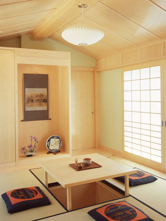7) 极简设计原则 正如上面所讲的那样,日式风格的室内设计是简洁的。在正宗的日式居室里面不仅东西很整洁,连家具都不会太多。设计联 那么,我们应该要怎么样才可以做到虽然空间里家具很多,室内的设计也做的很摩登,但是依然能够保证融入一些日本风格呢?这个小秘诀就是,你的设计要做到简洁,大部分现代设计爱好者都会发现这个并不难做到。 买些线条流畅的实木家具,棱角分明的现代灯具(正如上图片里面看到那样),或者那些模仿日式灯笼的家具也是不错的选择。总而言之,如何将简约的风格融入到当代的居室设计当中,要记住在这样的设计当中,没有一样东西是多余的。了解一下风水学也是很重要的哦。