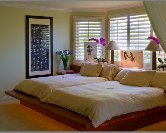1) 自然元素必不可少 日本文化无处不体现着对大自然的爱与崇敬。将自然与设计融合起来的最好方法是将自然元素带进家中。摆放一些日本的传统植物,例如“盆栽”或者“竹子”就能让你的房子瞬间变得很有日本风情。 其实呢,任何深绿色的植物都能达到类似的效果,可以考虑一下兰花或者棕榈盆栽。色彩丰富一直都并不是日式风格的特征,因此无论打算选择怎么样的植物来装点你的家,都要记得选自然简单的绿色植物。 在日式风格的家里,宽大的窗户你可以无死角地欣赏到外面的自然风景。好像这个卧房那样,透过光滑的落地窗可以远眺到远处的平静的大海。输入 落地窗 查看设计联往期精彩内容
