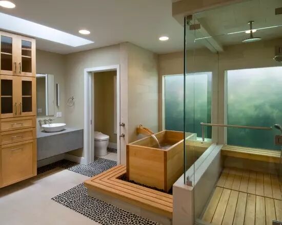 想象一下水咕噜咕噜冒泡的声音荡漾进耳中时带来的平静。水,是日式居室当中非常必要的一种元素。在你家里面多加一个水疗浴缸吧,当东方文化与西方文化碰撞起来的时候,就可以拥有你的独立spa浴室啦。 Ofuro在日语当中就是“浴缸”的意思,是家里非常有价值的传统物件。日式浴缸(浴盆)较小且深,并且在里面有“座位“用以水疗时坐着。许多具有养生意识的房主都喜欢这个充满着东方意味的泡澡方式。设计联