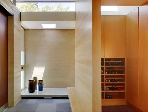 5)日式风格的玄关 日式风格的入口通常称为玄关,小小的区域就是用以方便客人在入门后更换拖鞋。正如联偶们看到的这张图片这样,玄关位置通常会有一个供人摆放鞋子的(不过通常很多日本家庭的鞋子都是放在外面而不是里面),而玄关的设计通常都是很简约的。 对于日式家庭来说,石板尤其流行,特别是在玄关的位置。设计联建议联偶们可以借鉴一下日式风格中清晰简单的线条,毕竟保持玄关整洁也是一个不小的挑战。(特别对于北美的一些家庭来说,玄关通常都很凌乱,杂物堆积,又是信封又是鞋子的)设计联